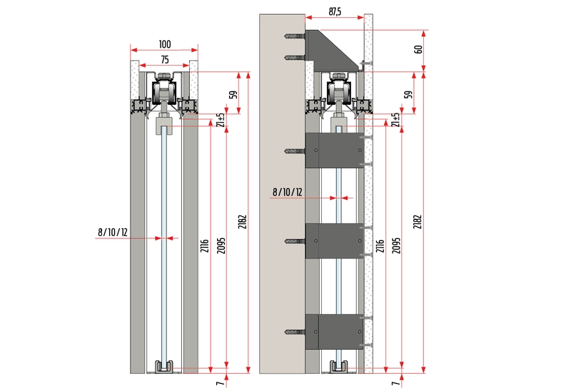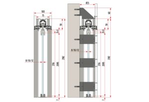 Tokszerkezet nélküli falban futó tolóajtó rendszer üveg ajtólapokhoz. A szerkezet vázát egy rendkívül merev horganyzott acél szerkezet alkotja, melybe a felső sín roncsolásmentesen be- illetve kiszerelhető. Beépítéshez tokborítás nem szükséges. Elérhető egy- és kétajtós garnitúrában is.