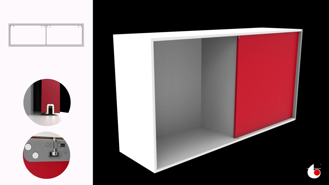Egy- vagy kettő kisméretű tolóajtóhoz használható felső felfüggesztésű bútor tolóajtó vasalat. A felső sínt a korpusz tetőbe kell süllyeszteni, ezáltal csökkentve a működési hézagokat. A hagyományos normál ajtófék mellett választható egy vagy kétoldalon csillapított változat is.