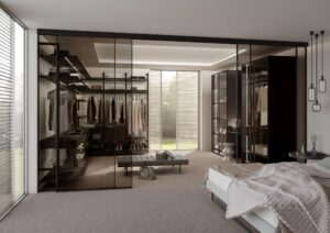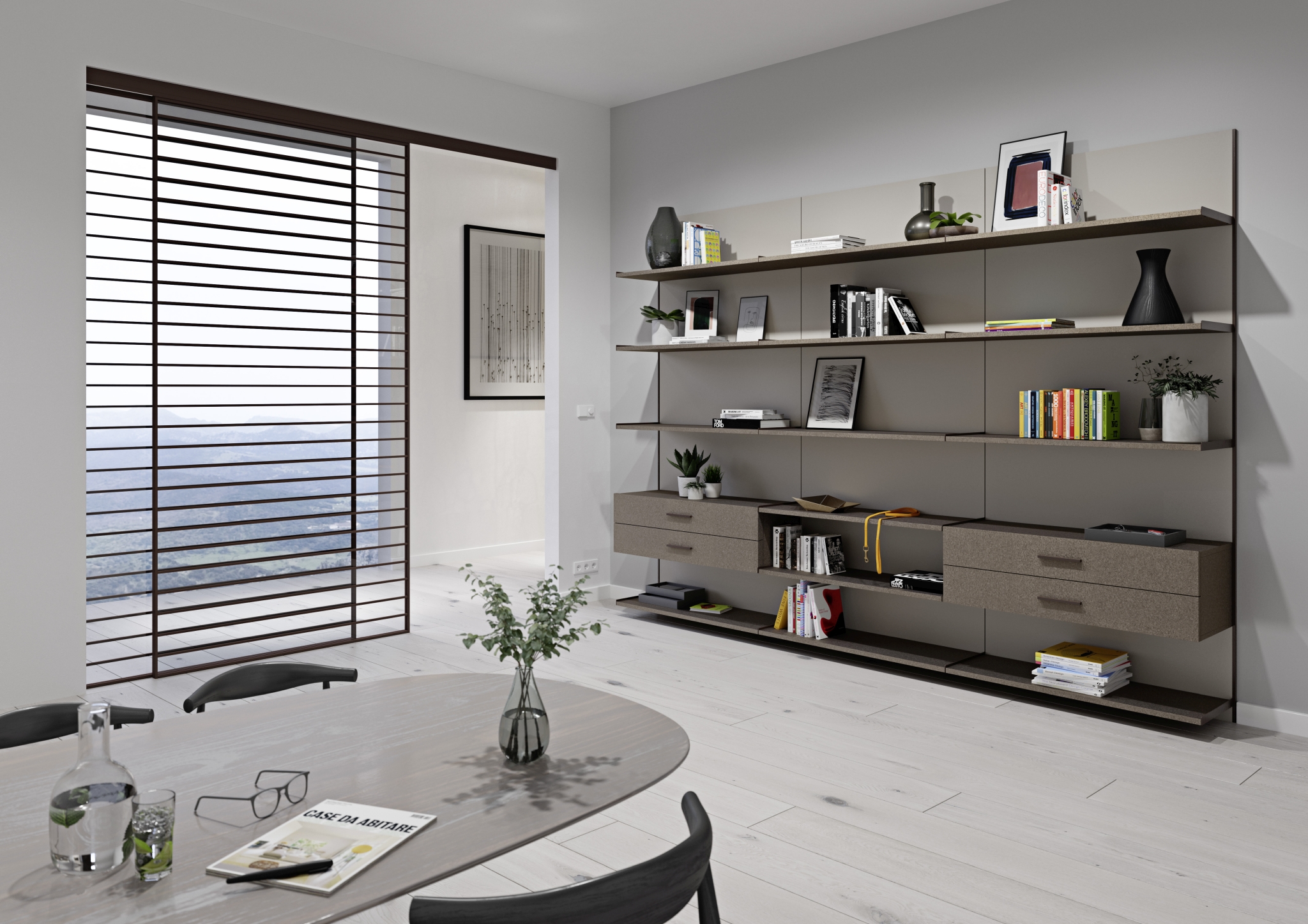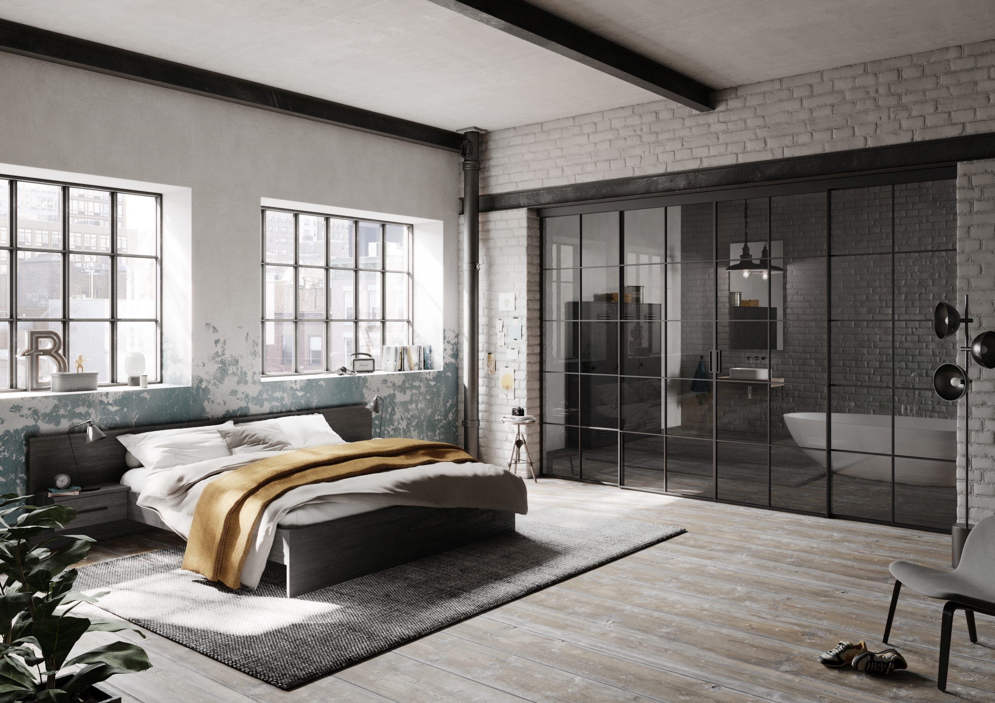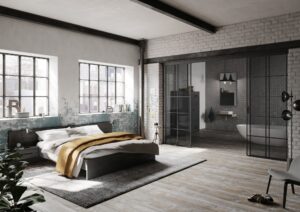 Prémium minőségű alumínium keretes felső függesztésű beltéri tolóajtó. Alsó sín nélküli, ezért kiválóan alkalmas beltéri térelválasztásra. A felső sínt rögzíthetjük oldalfalra vagy mennyezetre, akár fix üvegfalakkal kiegészítve.