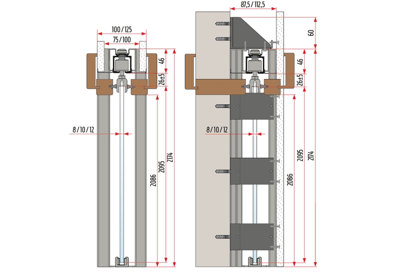 Kiegészítők szinkronik kiegészítő szett, kazetta emelő, kazetta magasító szett, kazetta rögzítő szett téglafalhoz, tolóajtó fogantyúk